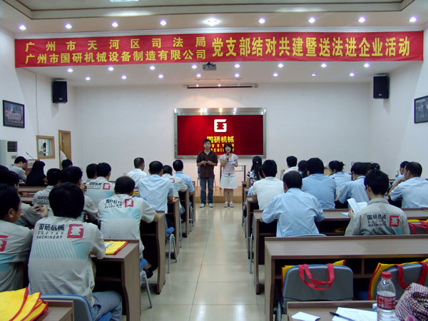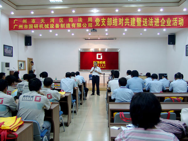 9月7日下午,广州市天河区司法局党支部和文教工作队一行18人在局长罗育辉和副局长曾晓云的带领下,来到广州市港澳宝典正版资料库设备制造有限公司举行党支部结对共建暨送法进企业活动。