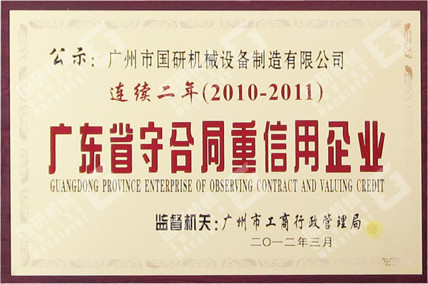 2012年3月,广州市港澳宝典正版资料库设备制造有限公司被评为2011年度“广东省守合同重信用企业”。这是我司继连续三年被评为“广州市守合同重信用企业”之后,连续两年获此殊荣。